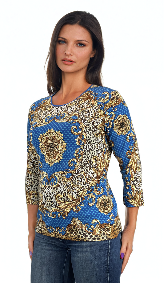 Bluză de damă - tricou cu mâneci 3/4, decolteu rotund