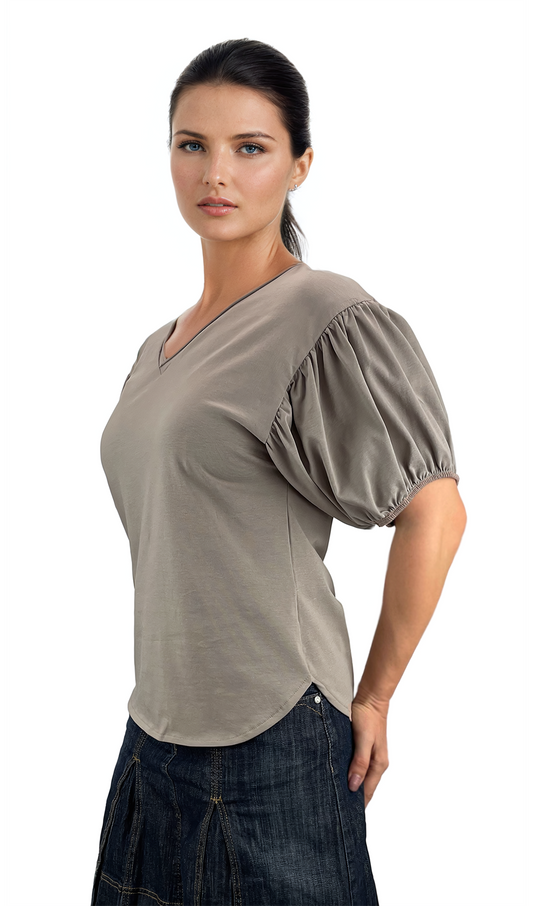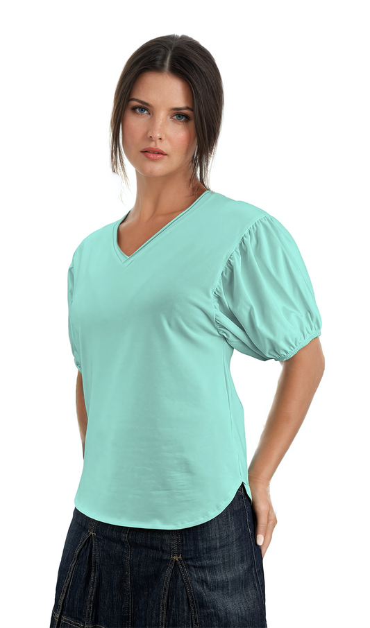 Bluză de damă - tricou cu mânecă scurtă și decolteu ascuțit