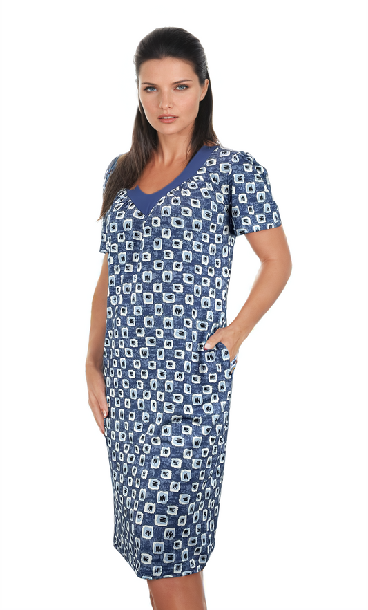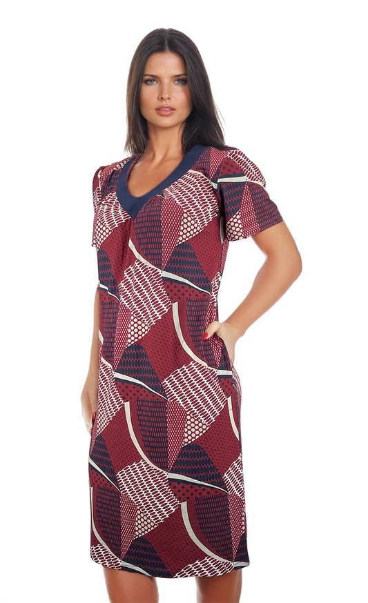 Damenkleid mit kurzen Ärmeln und Rundhalsausschnitt