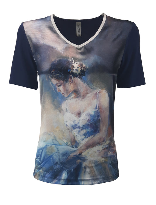 Tricou de damă cu mânecă scurtă și decolteu ascuțit