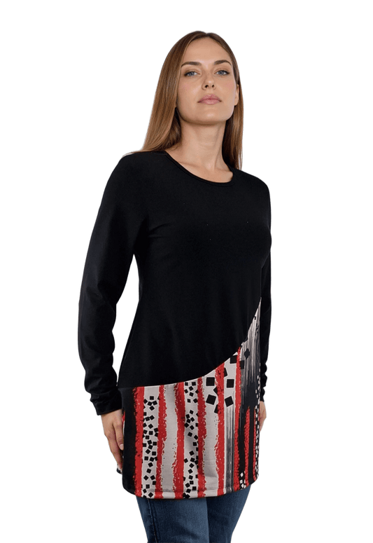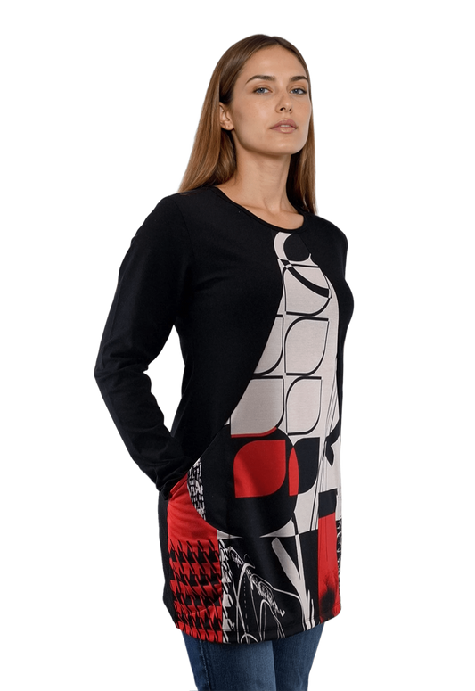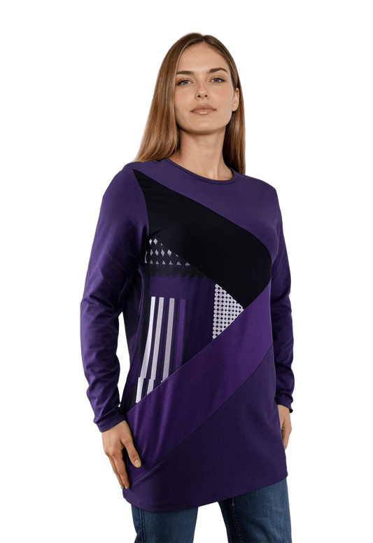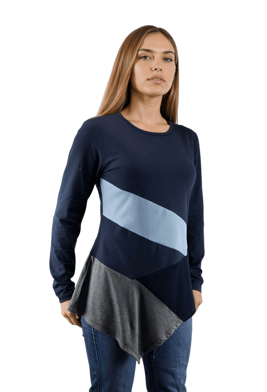 Bluză-tunică asimetrică pentru femei cu mâneci lungi și decolteu rotund